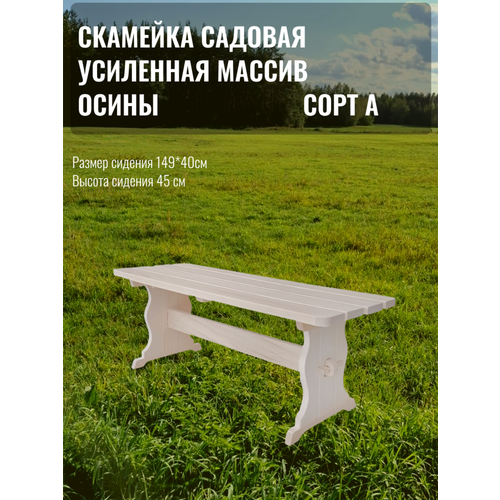 Скамья садовая деревянная усиленная разборная без спинки массив осины сорт А 1,5 метра для бани, дачи, сада