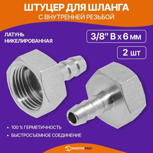 Штуцер для шланга 3/8 в на 6 мм, латунь, 2 шт.
