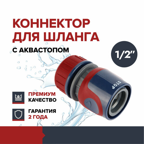 Коннектор для садового садового шланга 1/2" с аквастопом Fachmann Garten Experte быстросъемный