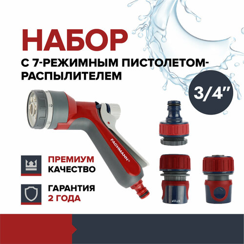 Набор поливочный 6 Fachmann Garten Experte пистолет распылитель, универсальный адаптер, коннекторы 3/4