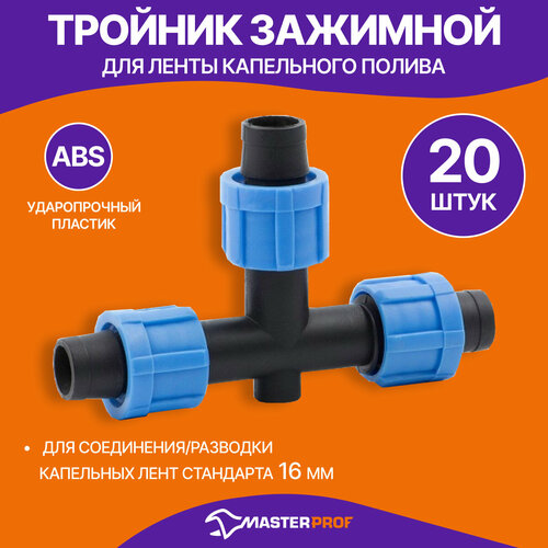 Тройник для ленты капельного полива зажимной, 20 шт.