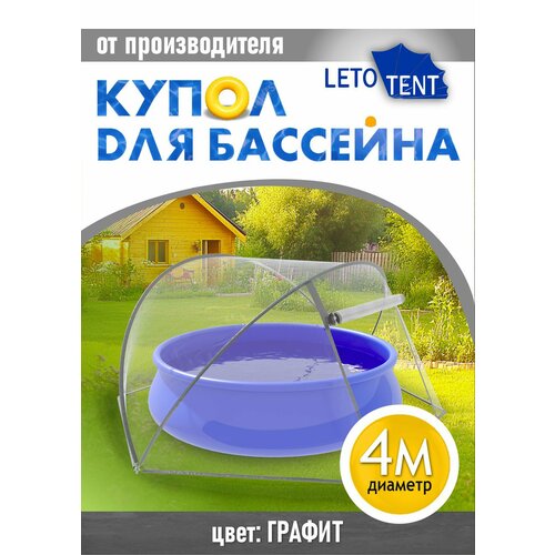 Купол-тент для бассейна LetoTENT, 4 м, ПВХ-200мкм, прозрачный/серый