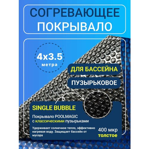 Согревающее покрывало 4х3.5 м Poolmagic SINGLE BUBBLE пузырьковое плавающее, синее/черное, 400 мкм, тент для бассейна