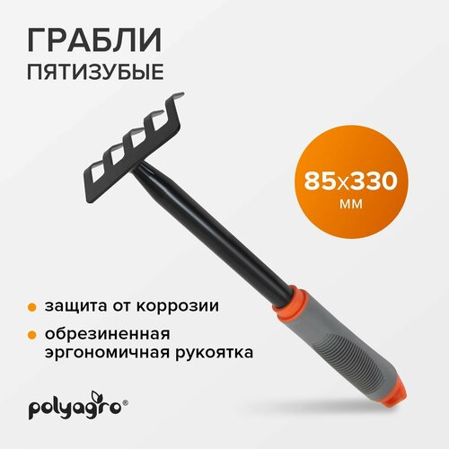 Грабли штыревые стальные садовые 5 - зубые, с обрезиненной рукоятью, Polyagro