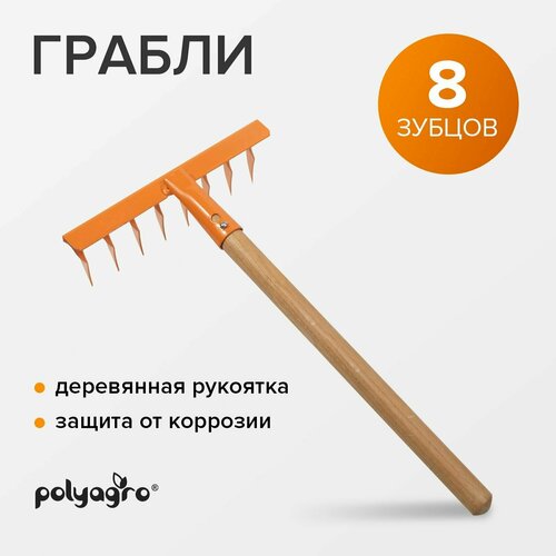 Грабли садовые витые 8-зубые деревянная рукоятка Polyagro