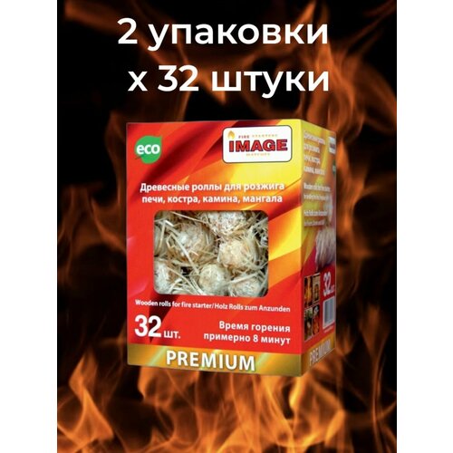 IMAGE / Древесные роллы для розжига, 2 упаковки по 32 шт.