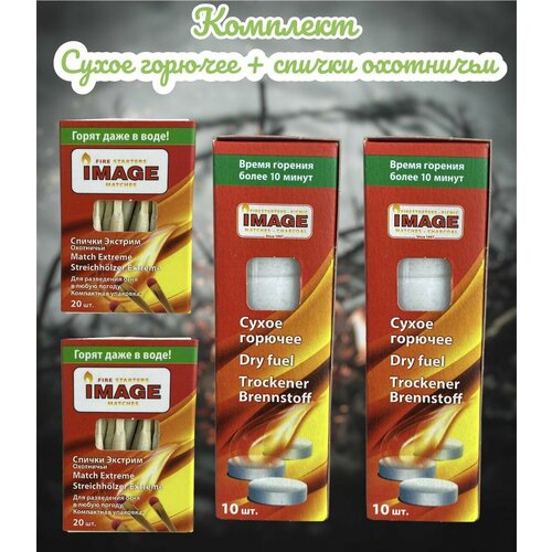 Сухое горючее 2 упаковки + спички охотничьи 2 упаковки/ Комплект для туризма