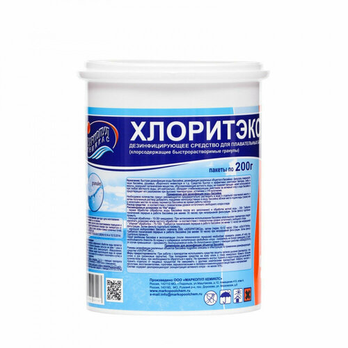 Комплексное средство для дезинфекции бассейна Хлоритекс 800 г (гранулы) 4 пакета по 200г, Маркопул Кемиклс