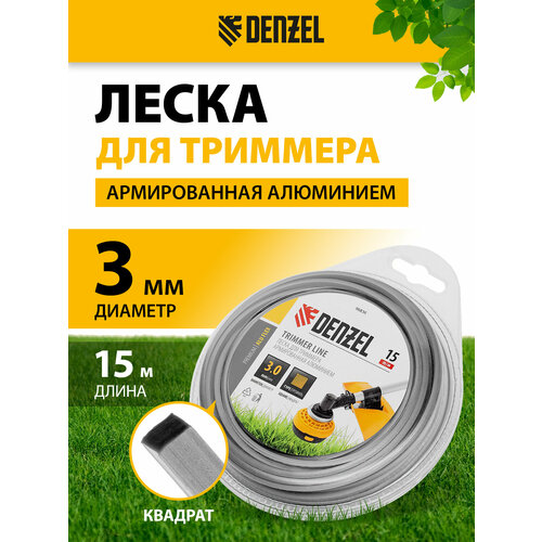 Леска для триммера армированная алюминием Denzel квадратная 3, 0мм х 15м, блистер ALUFLEX 96836