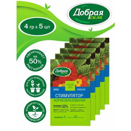 Комплект Добрая сила Стимулятор корнеобразования Корневин, пакет 4 гр. х 5 шт.