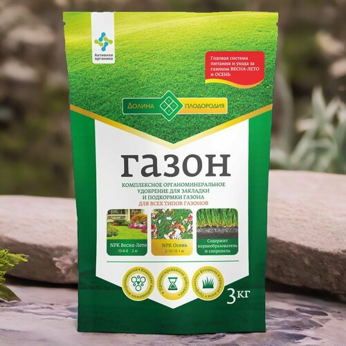 Комплексное органоминеральное удобрение газон, для всех типов газонов 3кг / 1шт. Долина плодородия
