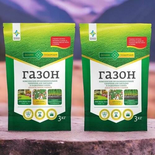 Комплексное органоминеральное удобрение газон, для всех типов газонов 3кг / 2шт. Долина плодородия