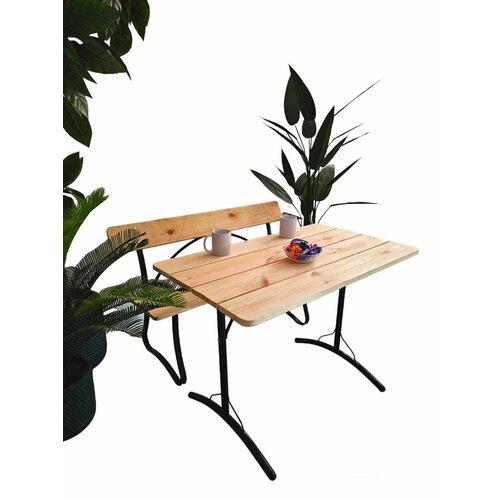 Стол садовый уличный металлический в стиле ЛОФТ, столешница из натурального дерева, обеденный, для дома, для дачи.