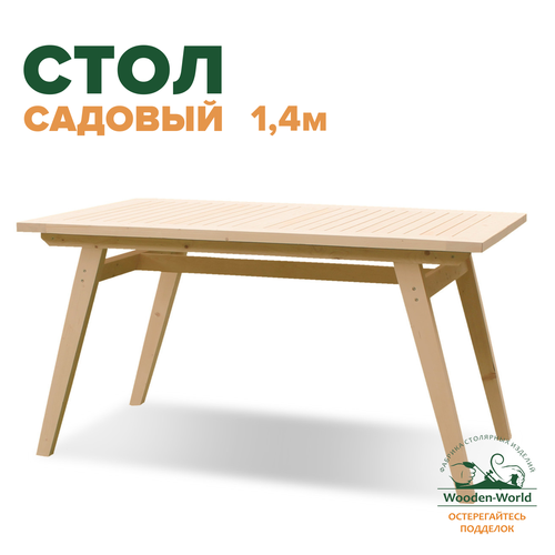Стол садовый деревянный с продольными ногами 1,4м из массива дерева