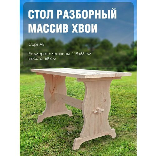 Стол деревянный разборный из массива хвои 1,2 м для дачи, сада и огорода