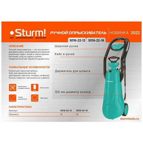 Цены на STURM GS8205 Опрыскиватель аккумуляторный 4л, USB TYPE C, 2.5Ач, 1.5 бар бирюзовый в г. Пермь
