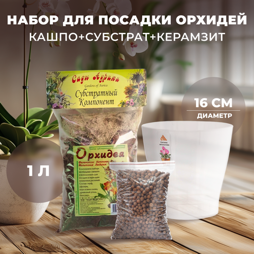 Набор для посадки и пересадки орхидей: готовый субстрат 1 литр, двойное кашпо с автополивом и керамзит в качестве дренажа