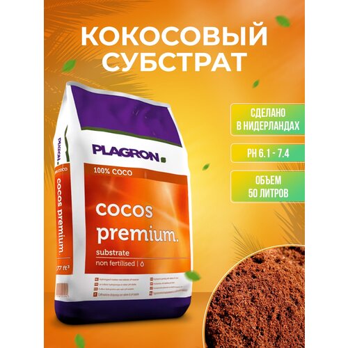 Субстрат Plagron Cocos premium, 50 л, 17.9 кг коричневый