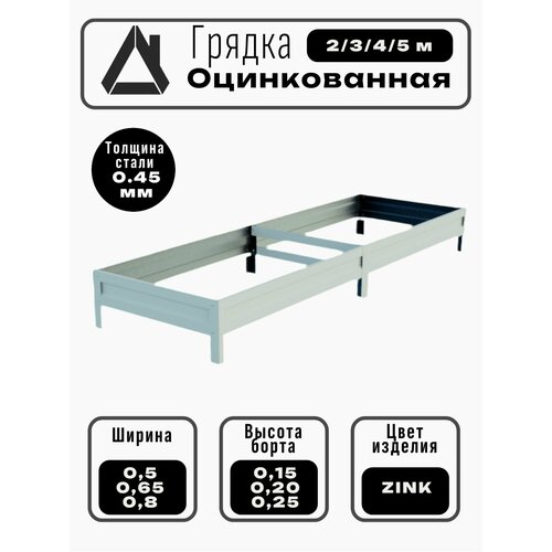 Грядка оцинкованная длина 4м, ширина 0,8м, высота 15 см Zink