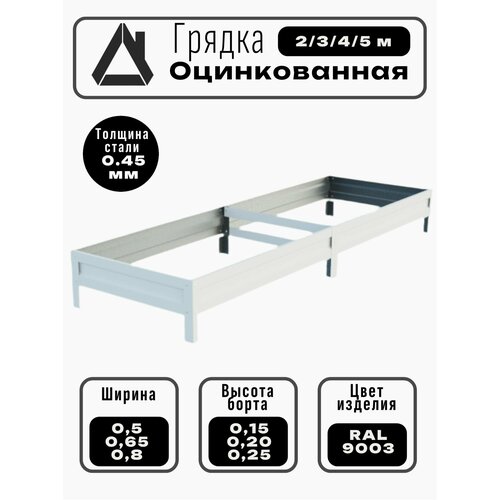 Грядка оцинкованная длина 4м, ширина 0,5м, высота 20 см RAL 9003