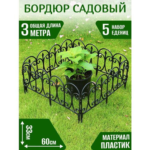 Бордюр садовый для ограждения клюмб, газона и грядок, заборчик пластиковый декоративный для цветов 33 х 60 см 5 шт в комплекте