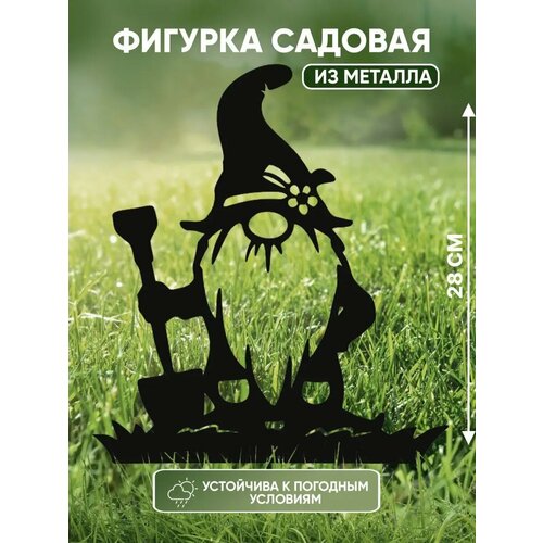Фигура Comfy Decor "Гном с лопатой", металл, 25х38 см, черная