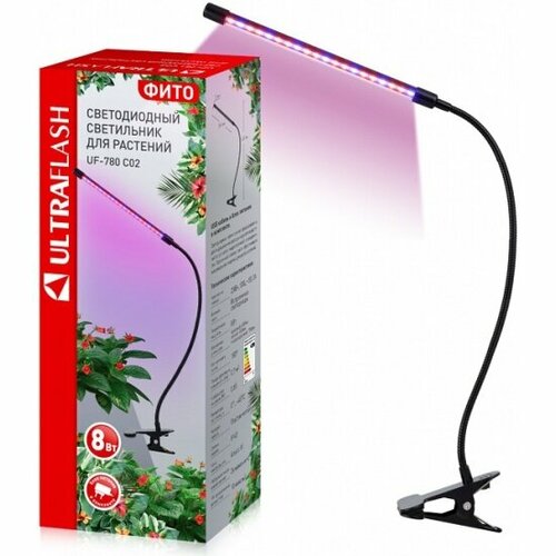 Фито светильник Ultraflash UF-780 C02 (фито светильник 8 Вт на прищепке)