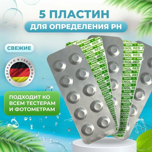 5 пластин Таблетки для тестера Phenol Red Water-id. Для определения Ph-ПШ в бассейне