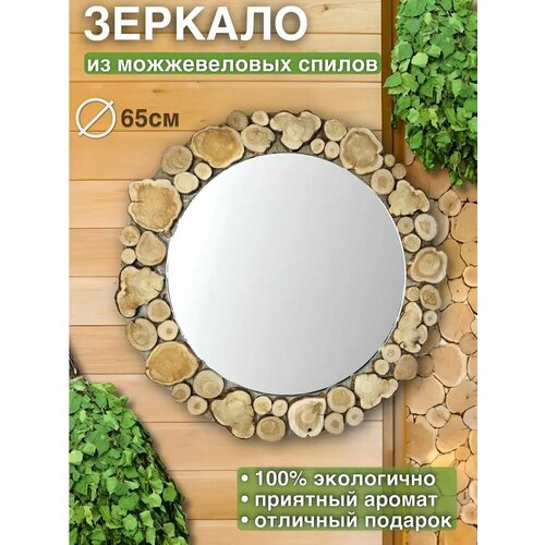 Зеркало из спилов можжевельника круглое в баню d65
