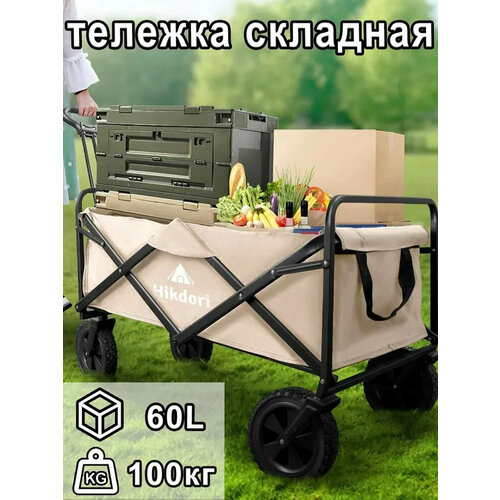 Тележка складная на колесах, садовая, на 4 колесах, ручная, для кемпинга, отдыха на природе,90X50X75CM, бежевый