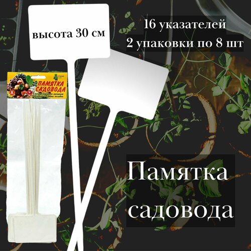 Таблички "Памятка садовода" для маркировки растений, метка для рассады 16 штук, высота 30 см