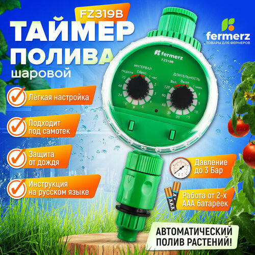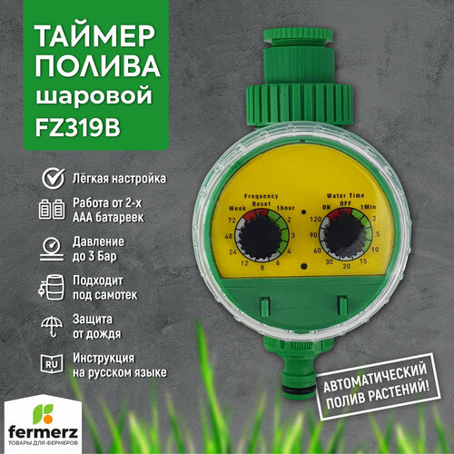 Электронный таймер полива под самотек FZ319B шаровый до 3 бар. Таймер для полива огорода, сада. Электронный таймер полива для грядок под самотек.