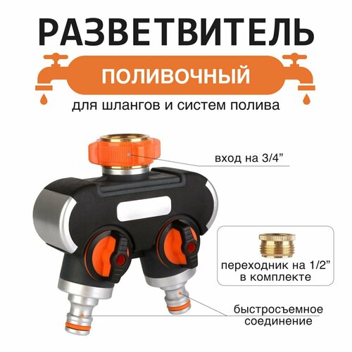 Распределитель садовый, на два выхода, механический, диаметр подключения 1", 1 шт