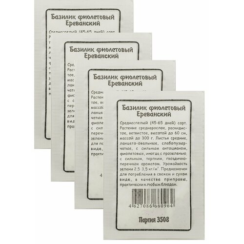 Набор - Семена Базилик Ереванский Фиолетовый 0,3 г БП , 4 пакетика * 0,3 г