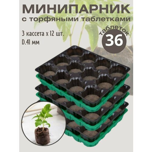 Минипарник для рассады с крышкой, торфяные таблетки 36 шт.