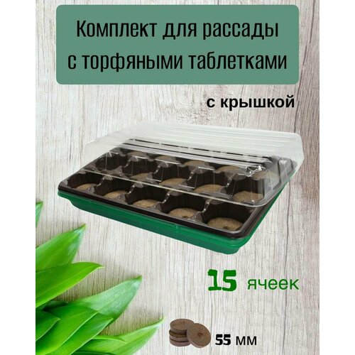 Набор для рассады "Умный огород" с торфяными таблетками (55) 15 ячеек с крышкой