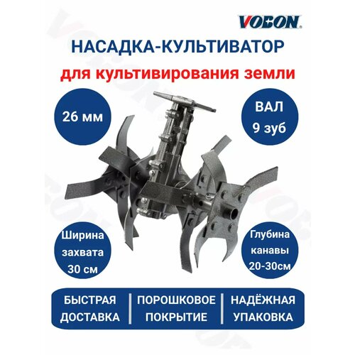 Насадка культиватор для триммера 9 зуб, 26 мм почвофреза AN