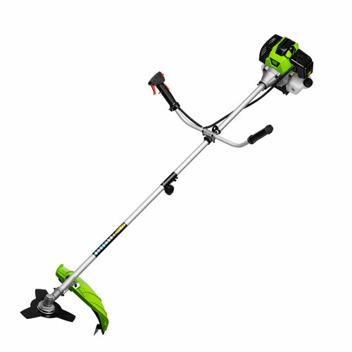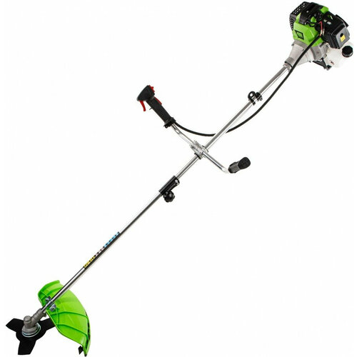 Редуктор рассчитан на высокие нагрузки, поэтому бензотриммер прослужит долго. Корпус двигателя изготовлен из ударопрочного пластика, устойчивого к механическим повреждениям. Блокиратор курка газа предотвращает случайный запуск триммера, обеспечивая безопасность пользователя. Прочный пластиковый кожух препятствует вылету травы, веток и мелких камней. Благодаря праймеру подкачки топлива двигатель легко запустится даже после долгого простоя. Полного ба