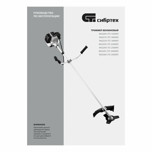 Триммер бензиновый ТС-3000Н, 52 см3, неразъемная штанга, состоит из 2 частей Сибртех