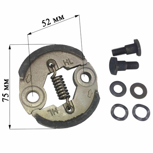 Сцепление подходит для триммеров (бензокос) с объемом двигателя 33, 43, 52 см3, пружина 8 витков в комплекте с болт