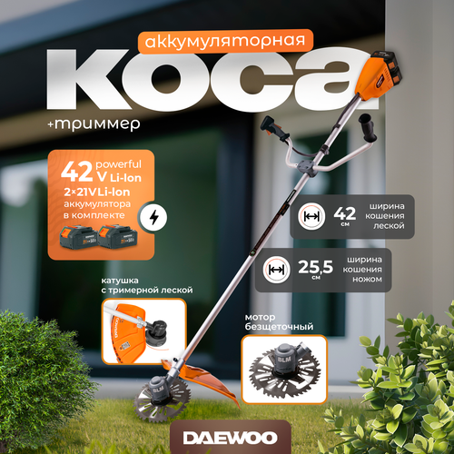 Триммер аккумуляторный DAEWOO DABC 4242Li с 2 АКБ и ЗУ (42В, 4Ач, леска+нож)