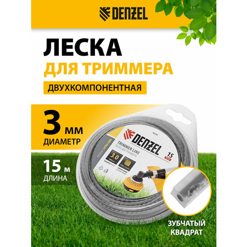 Леска для триммера двухкомпонентная Denzel зубчатый квадрат 3,0мм х 15м, блистер EXTRA CORD 96260
