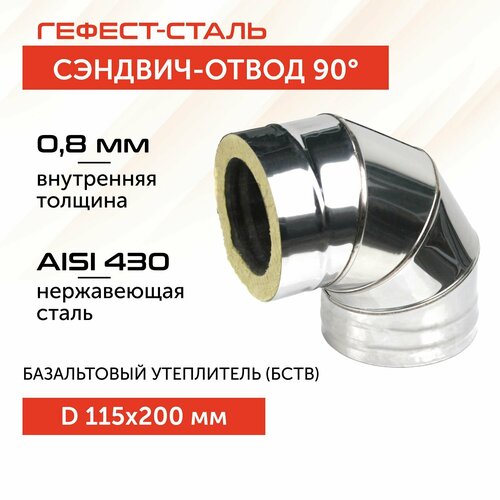 Отвод-термо 90*, 115х200, AISI 430/430, 0,8мм/0,5мм, (К)