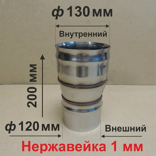 Переходник ф 120/130 мм П/М для дымохода нержавейка 1 мм