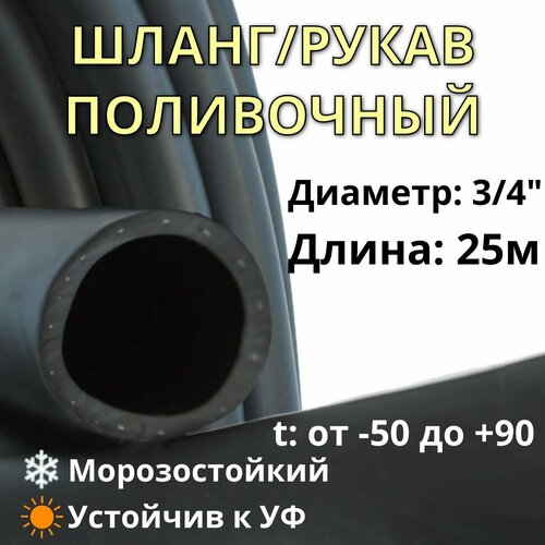 Шланг поливочный 3/4" 25м, резиновый ТЭП, морозостойкий, армированный, трёхслойный