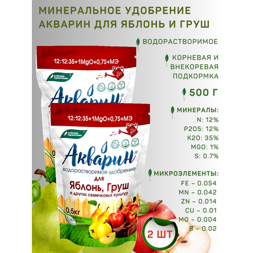 Удобрение водорастворимое Акварин "Для яблонь и груш", 0,5 кг, 2 шт