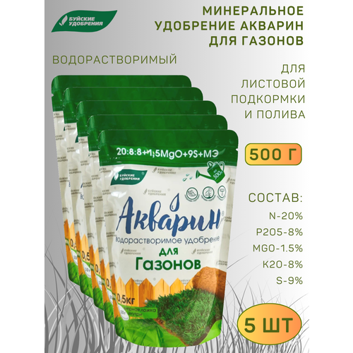 Удобрение водорастворимое Акварин "Для газонов", 0,5 кг, 5 шт