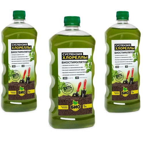 БИО-комплекс Органическое удобрение Суспензия хлореллы природный высокоэффективный биостимулятор, для замачивания семян, подкормки рассады, полива взрослых и домашних растений, 3 шт по 1 л~PDСпринклер роторный HF02 (INOVATO)