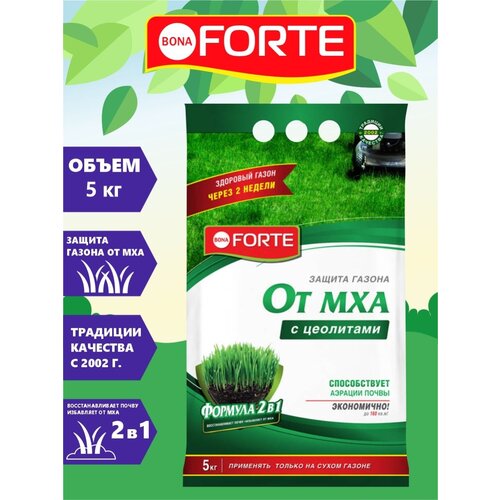 Удобрение BONA FORTE газонное с защитой от мха, с цеолитами, 5 л, 5000 г, 1 уп.