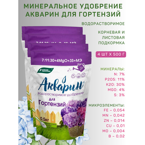 Удобрение водорастворимое Акварин "Для гортензий", 0,5 кг, 4 шт